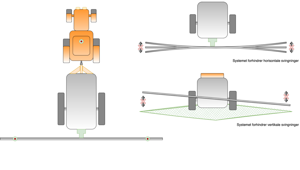 SteadySpray fungerer på to plan. Bomstabilisatoreren fokuserer både på Roll Control og Active Yaw Control, der henholdsvis fjerner vertikale og horisontale svingninger i sprøjtebommen uanset bommens dimensioner.